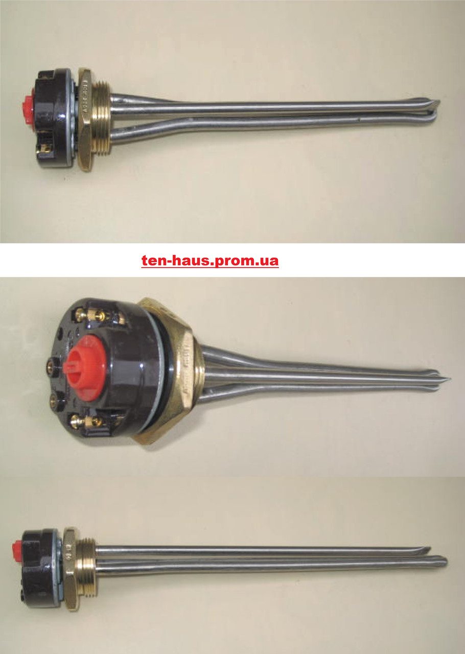 ТЕН для чавунної батареї 2000 Вт(2 кВт) в комплекті з термостатом. Нагрівач звуженою форми з нержавійки на латунній гайці 1 1/4(дюйм з чвертю) купити у нас легко